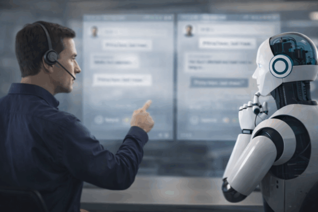 In many service environments, the first point of contact is AI: a chatbot answering simple, repetitive questions such as “Where is my package?” or “How can I change my appointment?” Or a voice bot that opens the conversation, identifies intent, and routes customers directly to the right agent.